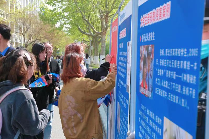 活动当日,校党委副书记史顺良亲临活动现场,参观“反邪教警示教育进校园”展板,并与现场学生亲切交流。