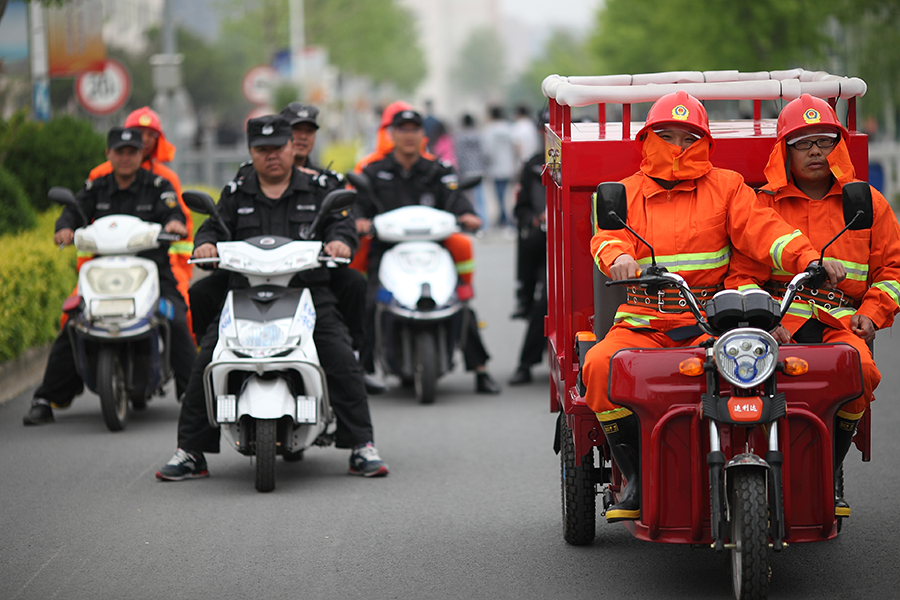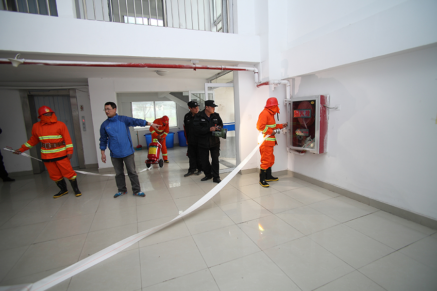 2017年4月23日,微型消防站队员在学生D区宿舍进行演习。葛颢老师将参加演习人员分成灭火救援和疏散逃生两组。灭火救援组身着灭火服,带呼吸面具,演习了门窗破拆、强光雾灯使用、消火栓通水和推车灭火器使用。通过本次演习,提高了微型消防站队员消防安全意识,增强了消防业务技能水平,为更加有效地发挥微型消防站应急处置能力、灭火救援水平打下了坚实基础。