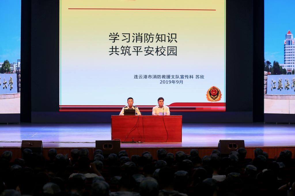 晚上7:00,新生消防安全知识讲座在我校苍梧校区大学生活动中心举行,保卫处处长马超主持讲座,市消防支队苏欣科长就高校存在的火灾隐患结合实际案例,向新生详细讲解了火灾的危害和预防措施。