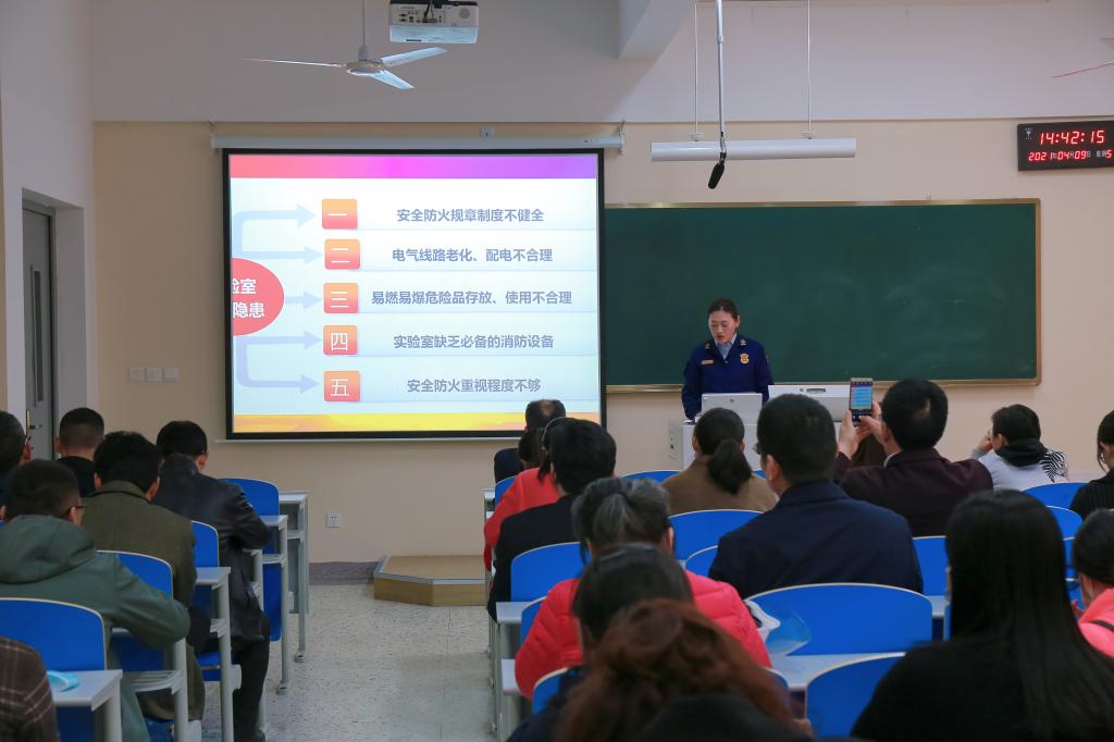 为提升我校实验室消防安全管理水平,有效维护学校实验室消防安全环境,4月9日下午,我校在文思楼101教室举办实验室消防安全知识专题讲座。讲座由市消防救援支队刘函如科长主讲。