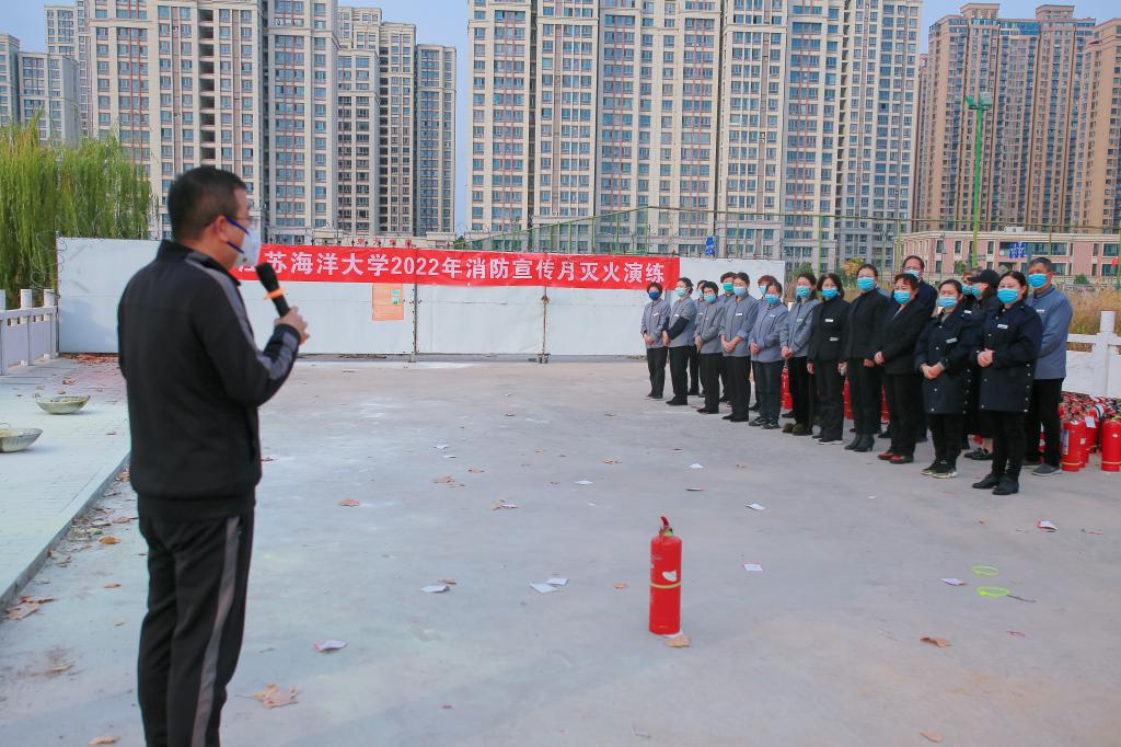 连云港市消防救援支队刘涵如科长应邀为大家进行了消防安全培训。参演消防官兵对火灾扑救、应急救援等方面进行了现场模拟灭火演练。保卫处消防科魏灵钢老师向大家详细讲解了如何正确使用灭火器,并进行了示范操作。新入职的物业员工在保卫处老师的指导下进行了灭火演练。本次灭火演练活动的开展,对提高物业员工消防安全意识和处置初期火灾的能力具有重要作用,为全校师生营造良好的工作和学习环境提供了重要的保证。