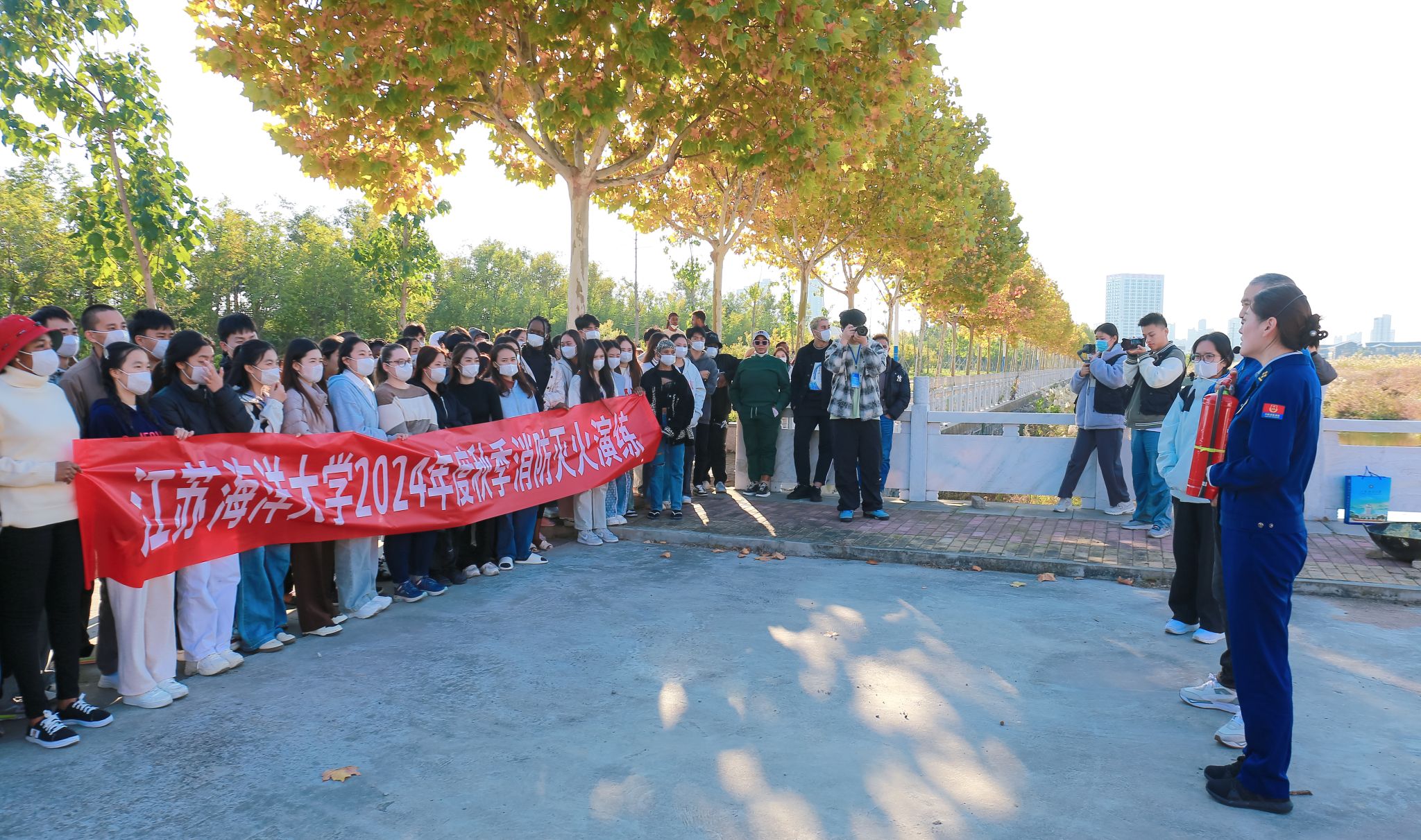 为进一步提升我校学生的消防安全意识和自防自救能力,强化消防安全风险防范,切实筑牢消防安全的人民防线,2024年11月6日,在第33个全国消防日来临之际,保卫处联合国际处开展“119消防宣传月”系列活动。本次活动包括留学生宿舍的疏散逃生演练和灭火演练。