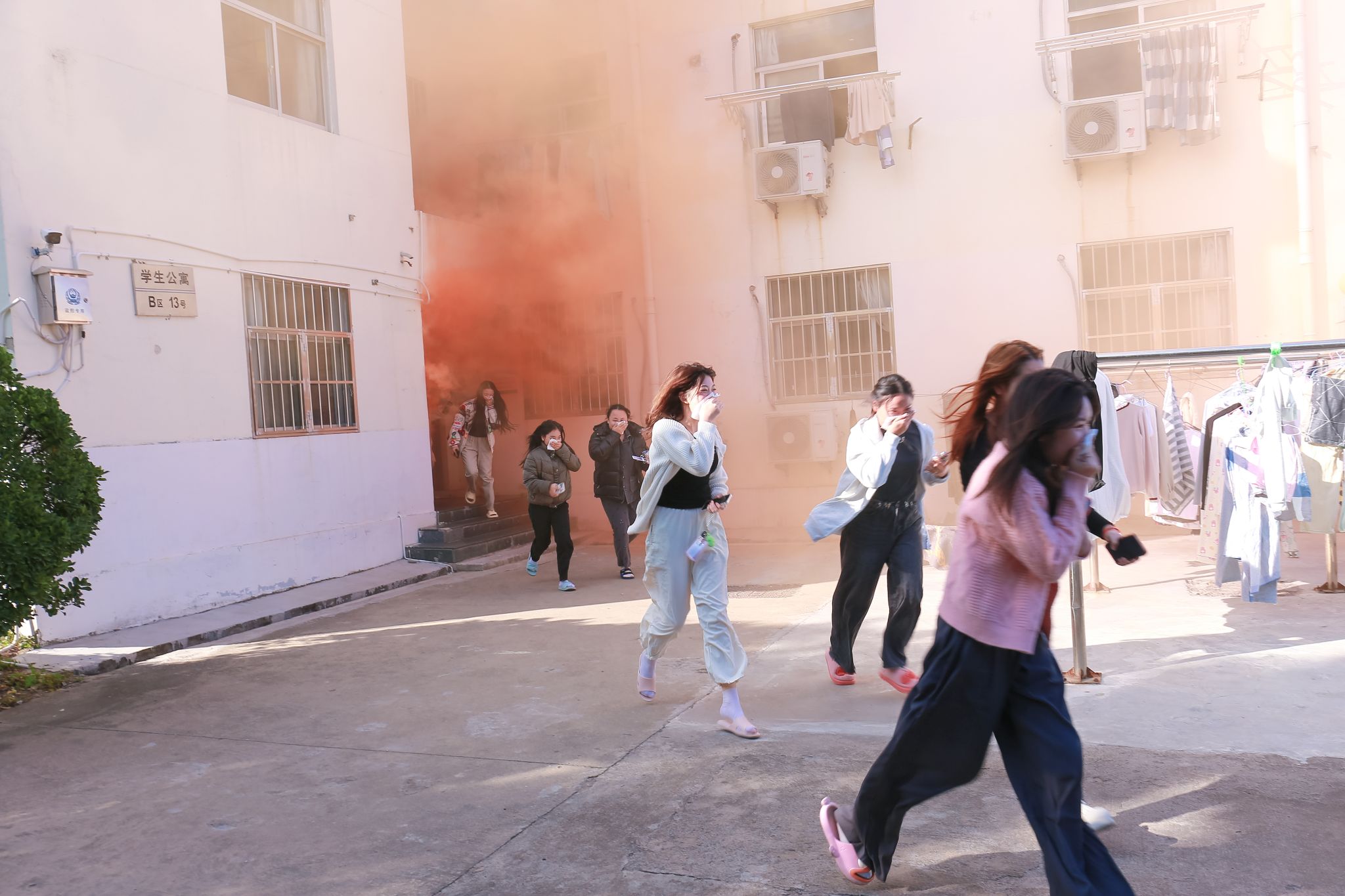下午14时15分,随着保卫处处长姜兵一声令下,汽笛声划破校园的宁静,疏散逃生演练正式开始。在模拟的火灾情景中,留学生宿舍内的留学生们迅速反应,按照事先规划的逃生路线,在引导员的指引下,保持低姿势、手捂口鼻,快速而有序地穿越了模拟烟雾区域,安全撤离至指定集合点。