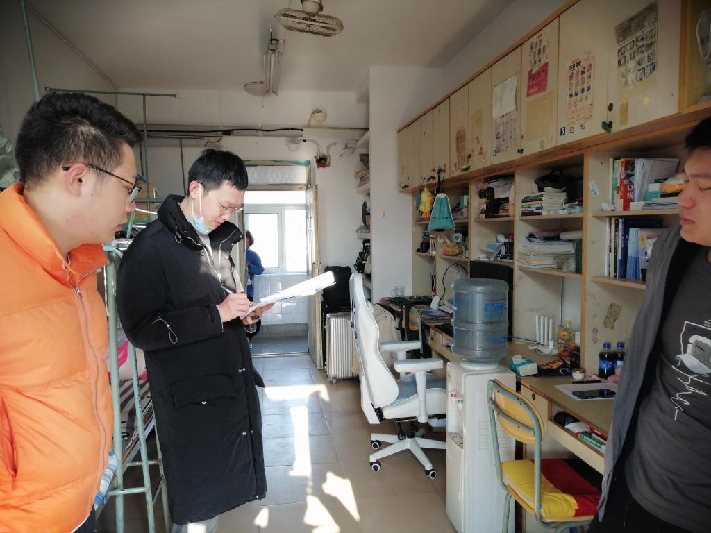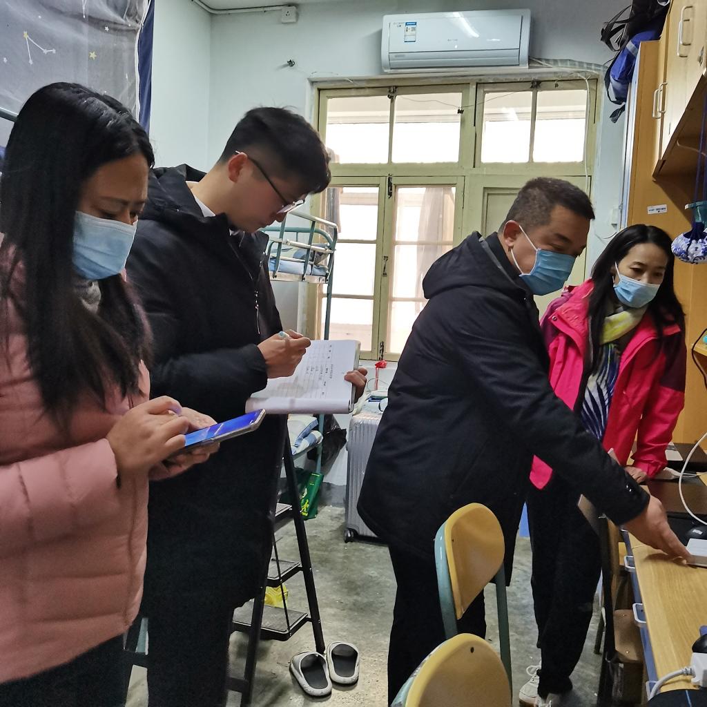 此次检查分29个小组,覆盖苍梧校区29栋公寓楼、3646间宿舍。检查小组认真排查学生宿舍存在的安全隐患,在整体推进、拉网式全覆盖基础上,聚焦排查大功率及违禁电器的使用、私拉乱接电线、插排随意摆放等,并认真记录检查情况。检查过程中,检查组人员不时提醒学生们增强宿舍用电、用水、防火、防盗等方面的安全意识;提醒大家坚持戴口罩、勤洗手、宿舍常通风,持续做好个人防护。检查发现,学生宿舍整体状况良好,绝大多数宿舍布置温馨,物品摆放整齐,地面干净卫生;部分宿舍物品摆放凌乱,人离开时充电宝等用电器连接插排未断电,阳台堆放纸壳等易燃物等。