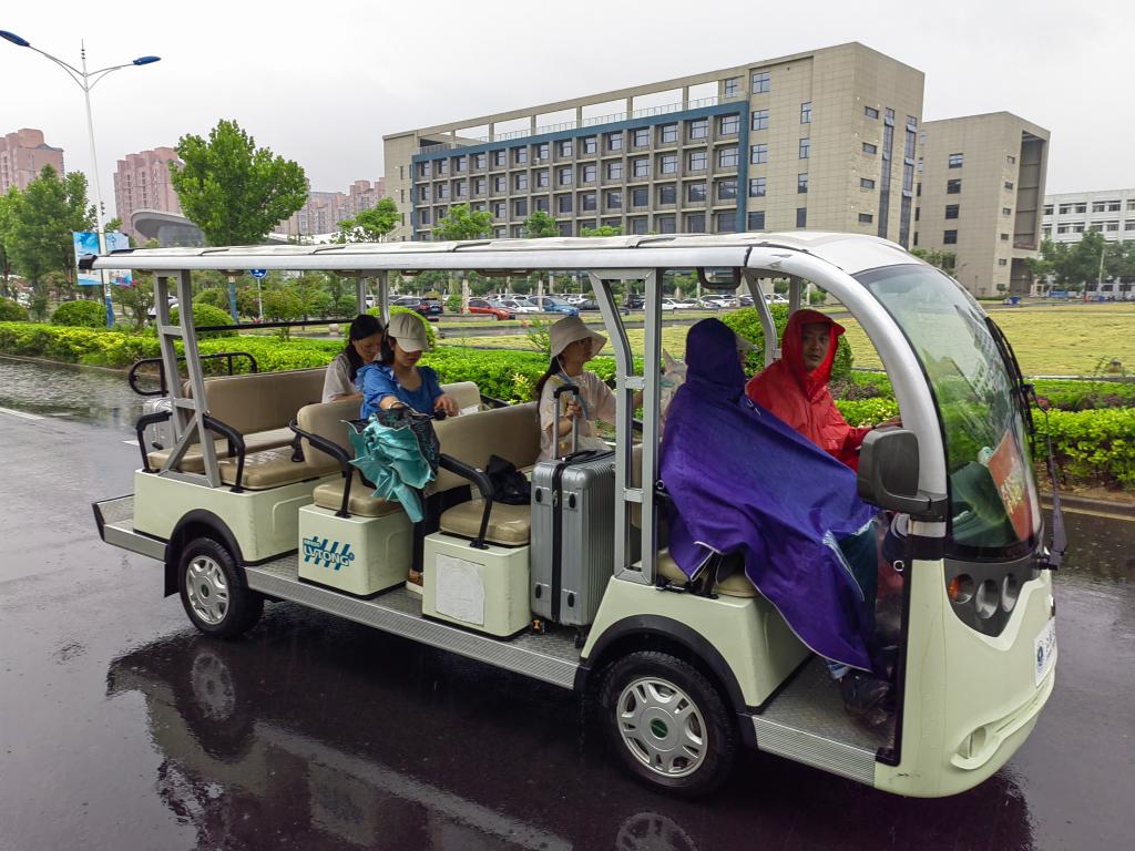 党课结束后,全体党员佩戴着党徽和入党积极分子一起,按照事先拟定的值班表安排,不畏酷暑、不惧风雨、不辞辛劳,驾驶行李车不间断的往返于学生生活区和3号门,帮助学生运送行李,引导学生安全、文明、有序离校。