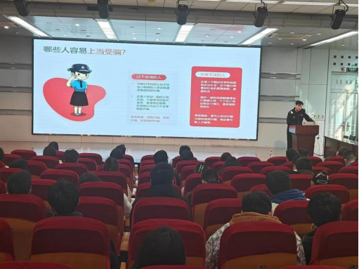 王欢在主题宣讲前进行了动员,他希望参加本次活动的同学认真学习防诈骗知识,增强自身防诈骗意识,同时要化身宣传员,带动身边的同学、亲朋共同防范电信诈骗,为学校、社会的和谐做贡献。