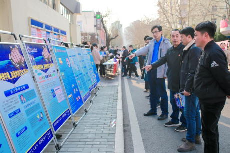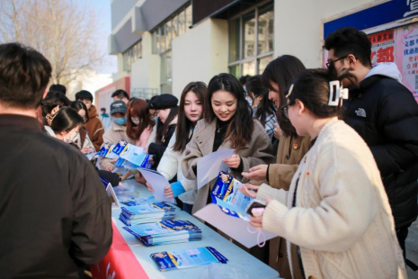 宣讲结束后,两个支部的全体党员来到设在一食堂北侧的“反诈宣传台”进行现场防诈骗宣传。场地周边事先布置了多块校园安全宣传海报和反诈骗宣传横幅,大家一边发放防诈骗宣传单和纪念品,一边对路过的同学作防诈提醒。活动现场学生参与度高,气氛热烈。