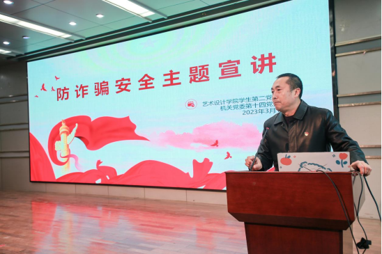 为切实提升大学生防诈骗意识,保护学生人生财产安全,3月1日,机关党委第十四党支部与艺术设计学院学生第二党支部联合开展了“师生携手防诈骗,结对共织安全网”主题党日活动。保卫处处长姜兵、艺术设计学院党总支副书记王欢出席活动,机关党委第十四党支部和艺术设计学院学生第二党支部全体党员及艺术设计学院部分学生骨干近百人参加了活动,活动由机关党委第十四党支部书记、保卫处副处长张启磐主持。