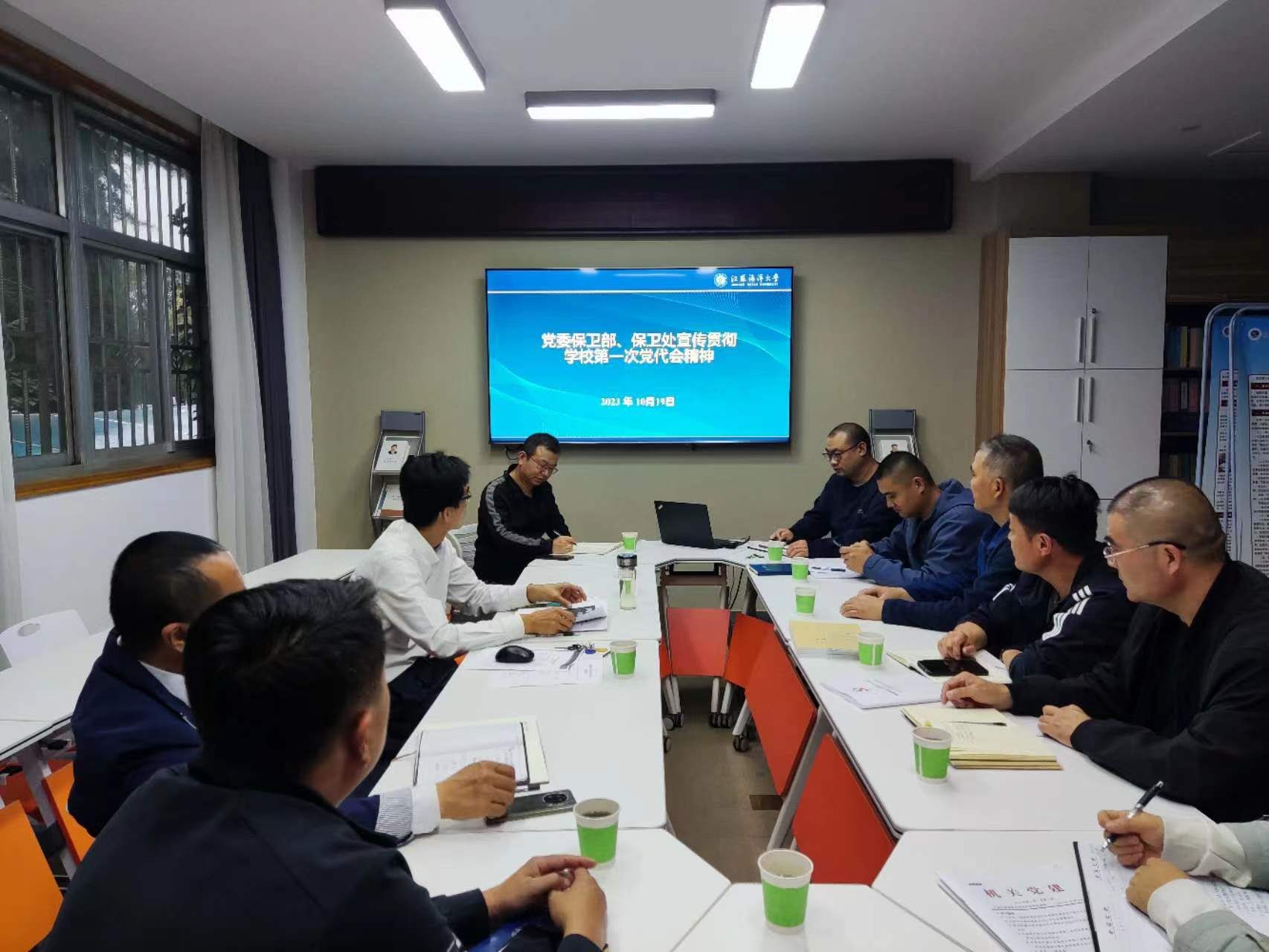 为深入学习贯彻党代会精神,10月19日,党委保卫部部长、保卫处处长姜兵为全体成员宣讲校第一次党员代表大会精神。