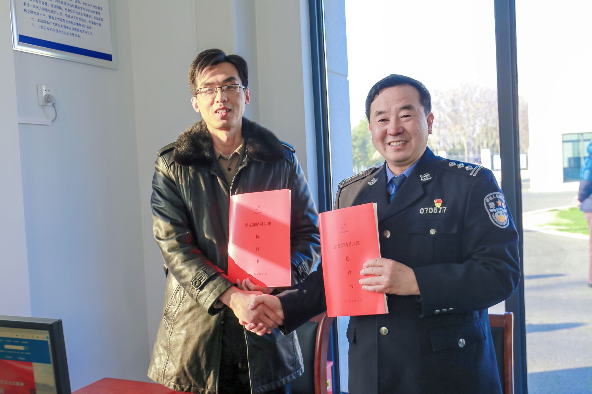 8日上午9:00,在苍梧校区警务室,姜兵与连云港市公安局内保支队党支部书记高文胜签订共建协议,双方围绕反诈宣传、治安防控、突发事件处置、校园周边治理、党建与志愿服务、如何做好校园安全工作进行了深入研讨。