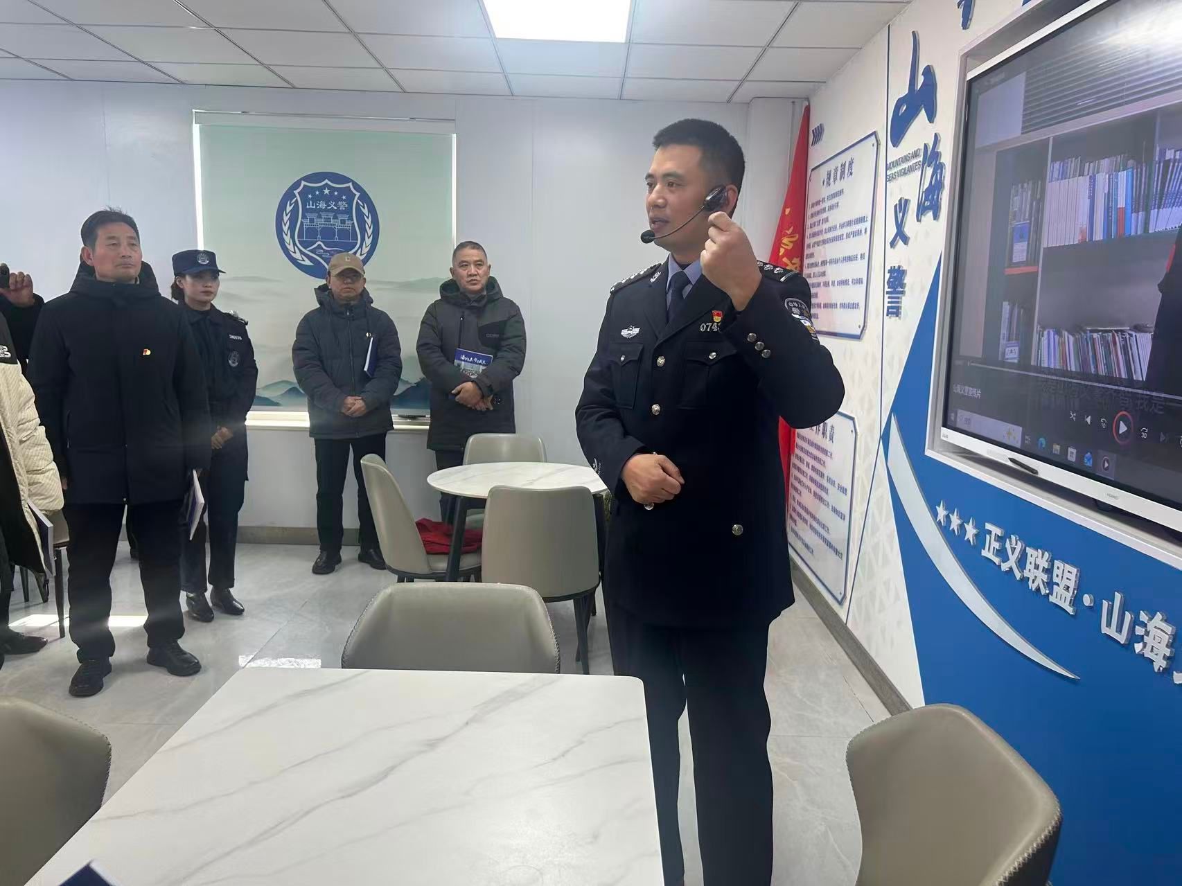 在警务站工作人员的引导下,党员们陆续参观了工作站综合指挥调度平台、低空警务融合作战平台、非诉讼纠纷解决分中心“八德调解室”、移动警务终端、海州区未成年人成长教育基地、正义联盟山海义警、警用无人机实战应用暨战术研究实验室、无人机自动方舱、装备室等。