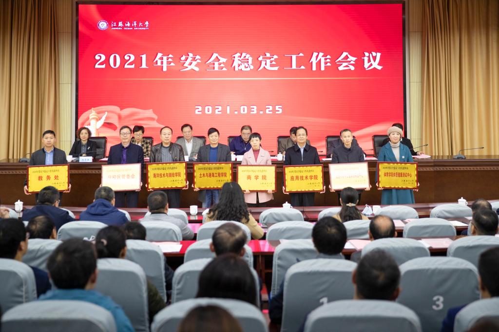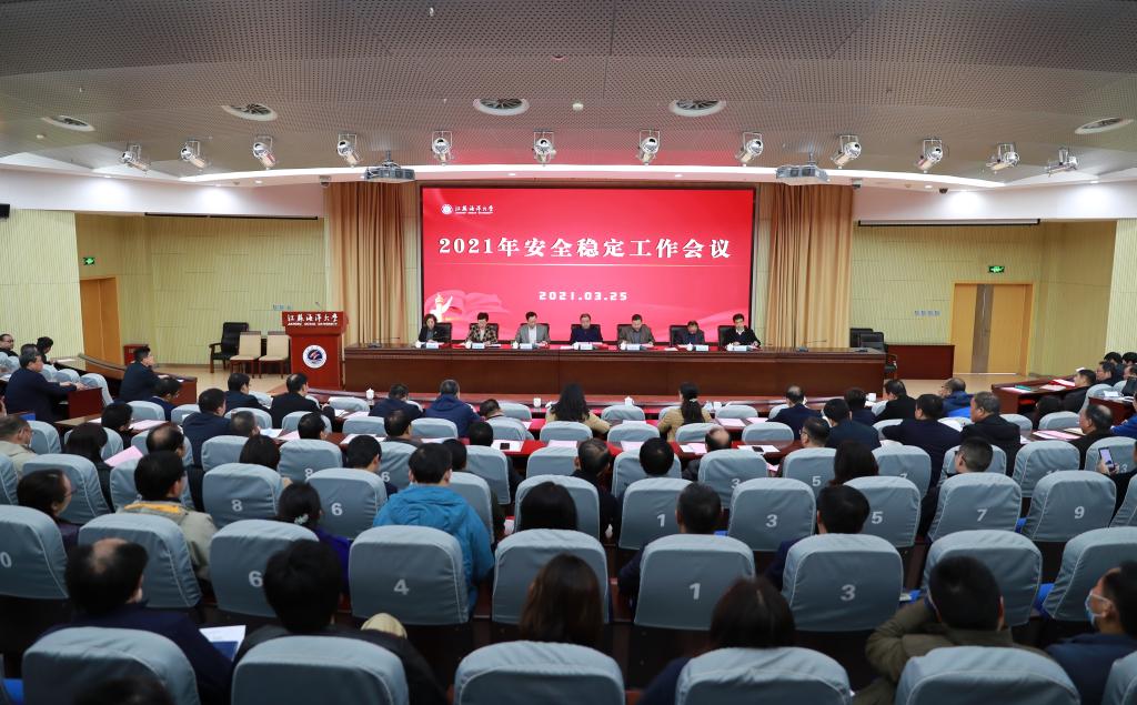 3月25日下午,我校在会议中心黄海厅召开2021年安全稳定工作会议。会议深入学习贯彻习近平总书记关于安全生产重要论述和对江苏安全生产工作的重要指示批示精神,落实全国安全生产电视电话会议部署和省市相关要求,总结我校2020年安全稳定工作,布置2021年安全稳定重点工作。全体在连校领导出席会议,副校长李梅英主持会议。