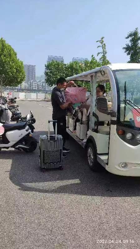 离校之际,学生公寓离校门较远、行李较多,离校最后一公里遇到了困难。为传递母校温情,做好学生文明离校教育,增强学生的爱校情结和感恩意识,6月21日-7月1日,机关第十四党支部全体党员和入党积极分子在苍梧校区学生生活区开展“让我温暖送行 愿您微笑启航”我为学生办实事主题党日活动,送别学生文明离校。机关第十四党支部书记张启磐同志主持活动。