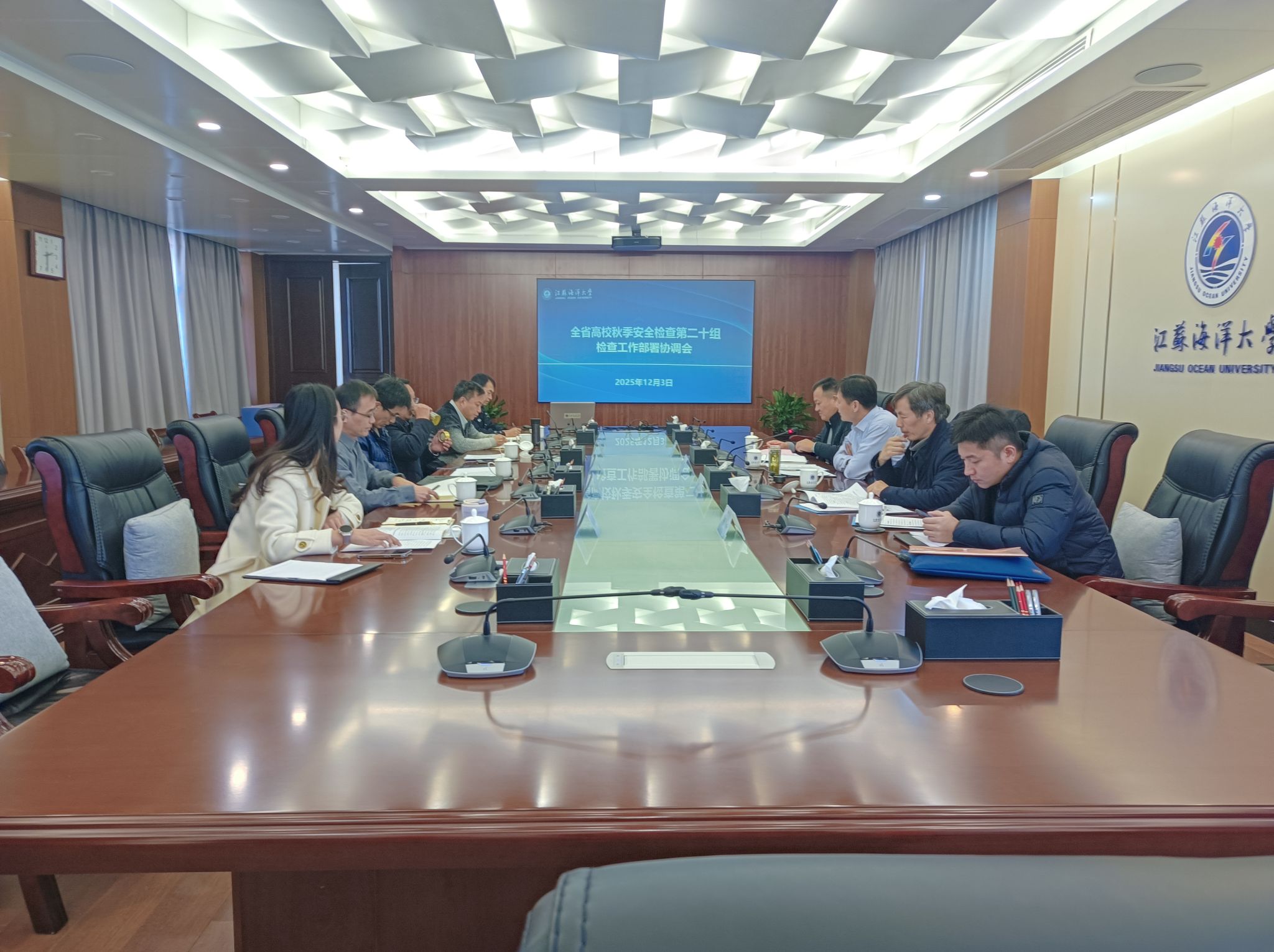 12月3日,以南京医科大学保卫处处长洪宇为组长的全省高校秋季安全检查第二十组一行4人莅临我校开展安全检查工作。学校在行政楼五楼会议室召开部署协调会。连云港师范学院、江苏财会职业学院、连云港职业技术学院、南京医科大学康达学院在我校集中参加会议。