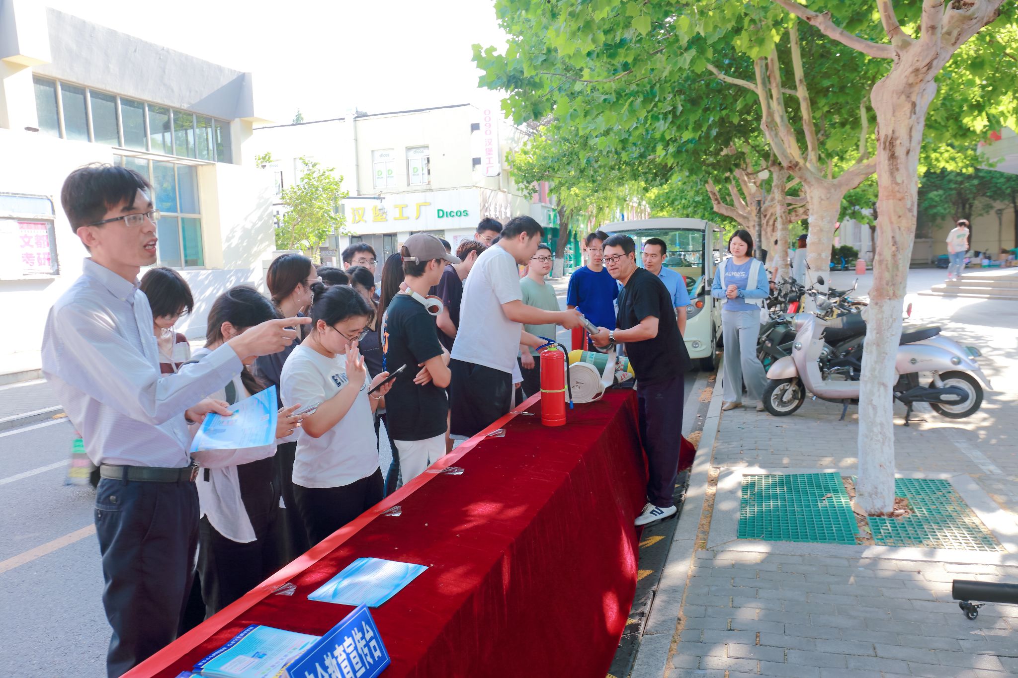 6月16日,我校保卫处在第一食堂对面举办了“安全宣传咨询日”活动。此次活动作为学校“安全生产月”系列活动的重要组成部分,旨在深入宣传贯彻习近平总书记关于安全生产的重要论述,提升全校师生的安全意识和应急处置能力,为校园安全稳定提供有力保障。