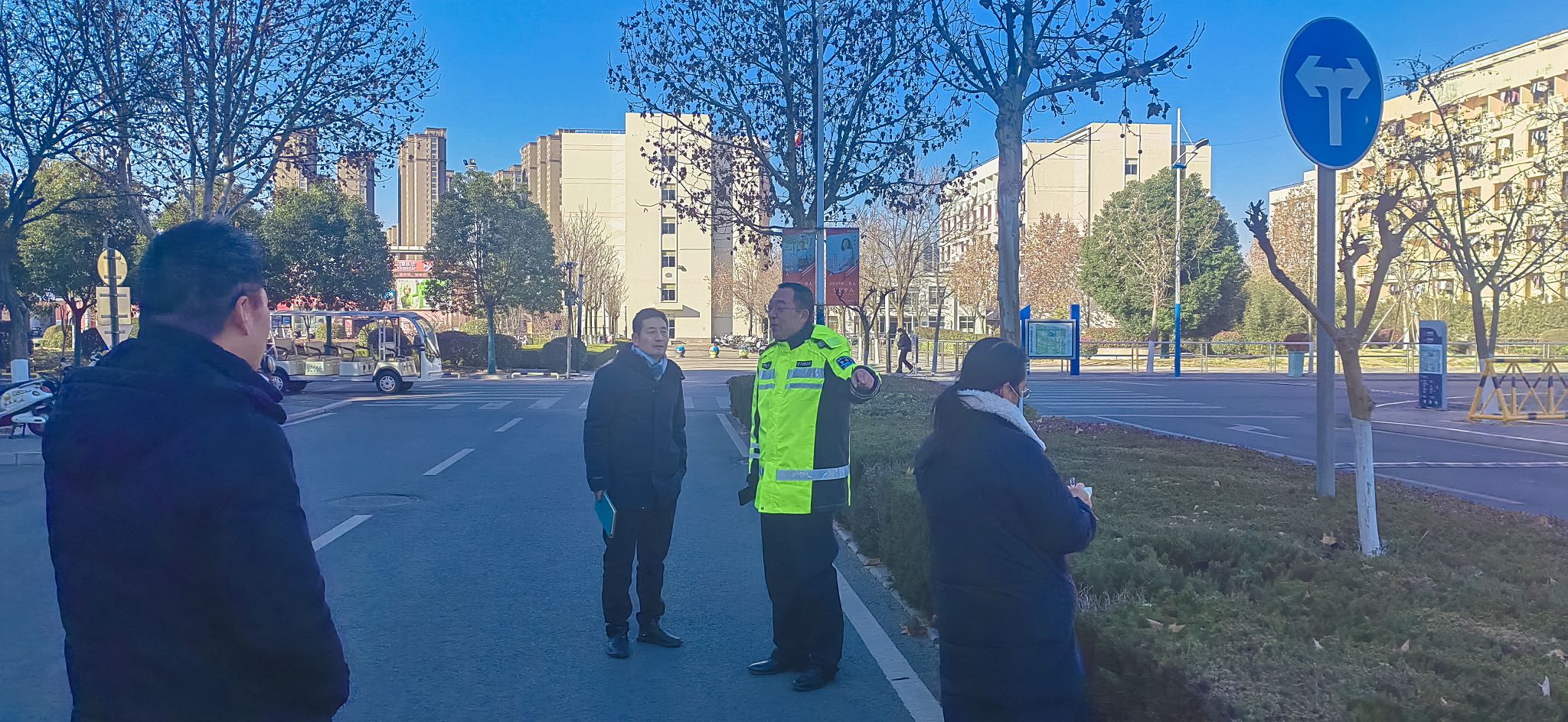 专家对目前我校学生自有电动车、非标三轮车、交通安全教育等情况进行了了解,并在保卫处副处长孙祖皓陪同下,对我校苍梧校区校园道路划线、安全警示标志、机动车限速标识和减速带等设施进行了现场考察,对我校校园交通安全管理工作提出建议意见。