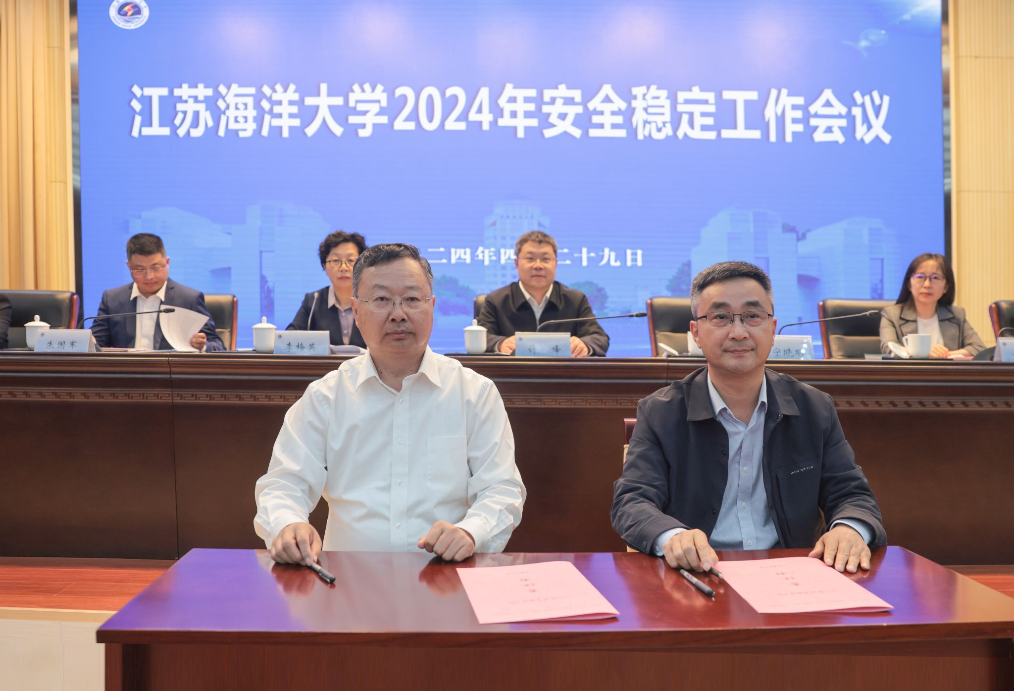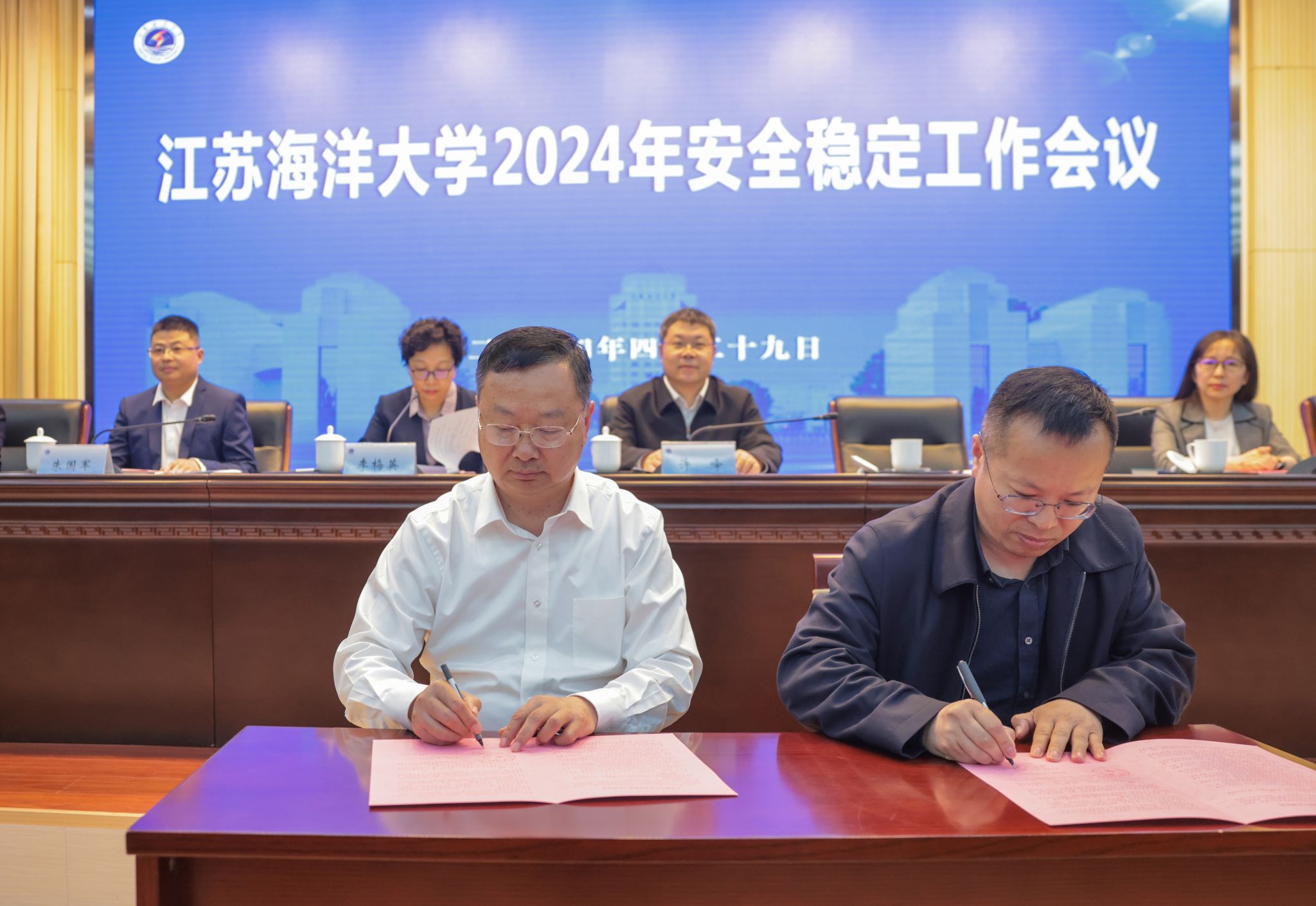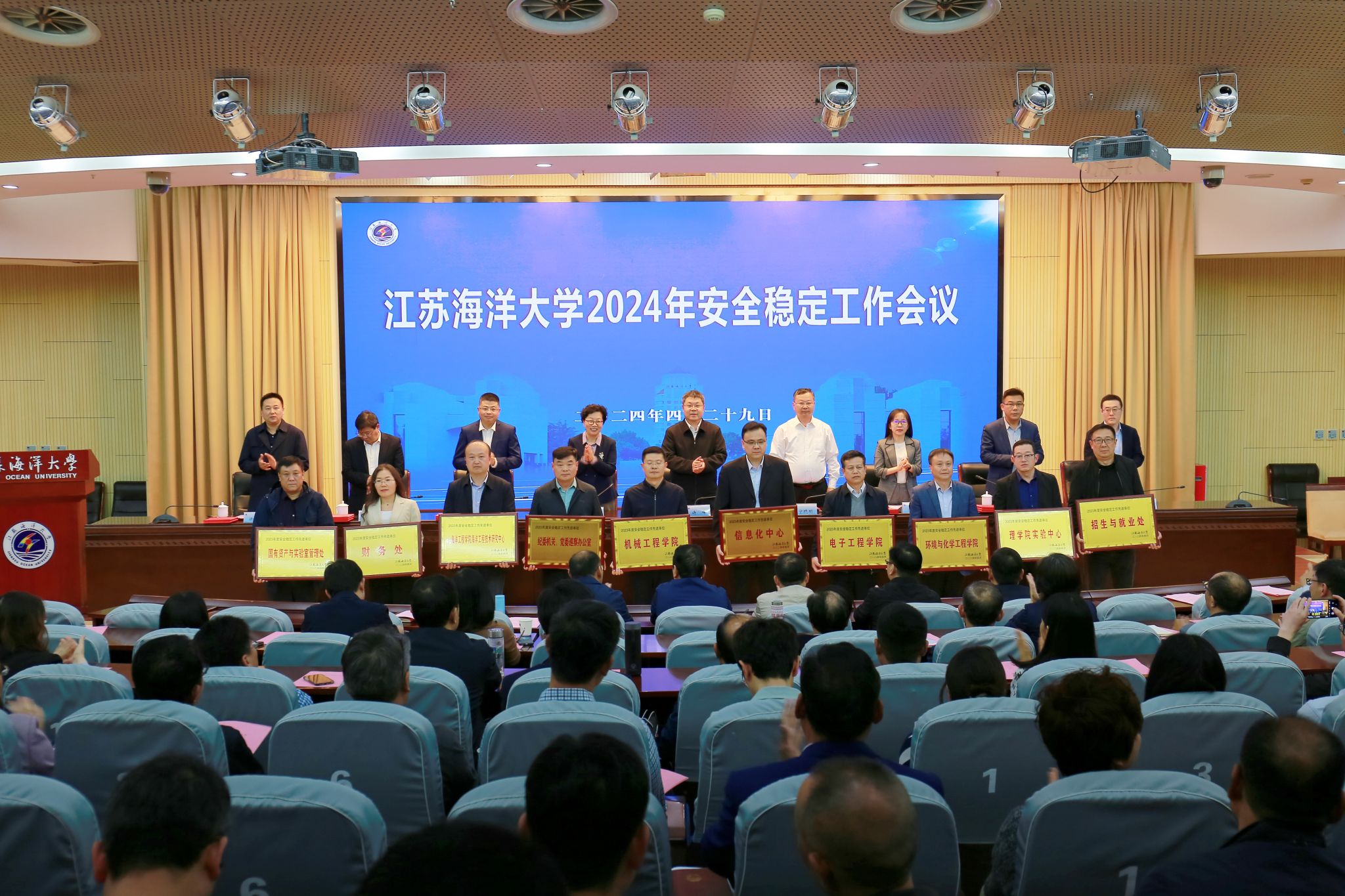 4月29日下午,我校在会议中心黄海厅召开2024年安全稳定工作会议,深入学习贯彻习近平总书记关于安全生产重要论述和对江苏安全生产工作的重要指示批示精神,落实全国安全生产电视电话会议部署和省市相关要求,总结2023年安全稳定工作,布置2024年安全稳定重点工作。全体在连校领导出席会议。党委副书记李梅英主持会议。