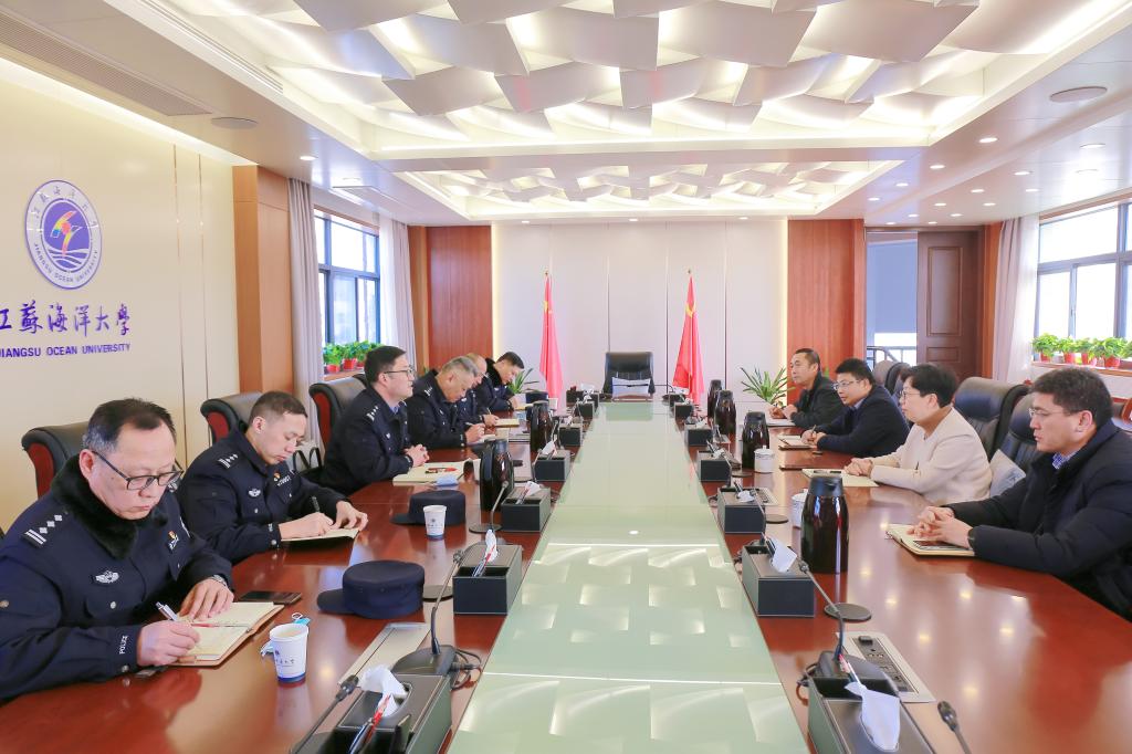 2月24日上午,连云港市公安局党委委员、副局长杨德成一行到我校调研开学疫情防控和校园安保工作。我校在行政楼五楼会议室召开座谈会,副校长李梅英、朱国军出席会议,市公安局内保支队、高新区分局等部门负责人,我校保卫处领导、相关保卫干部参加会议。
