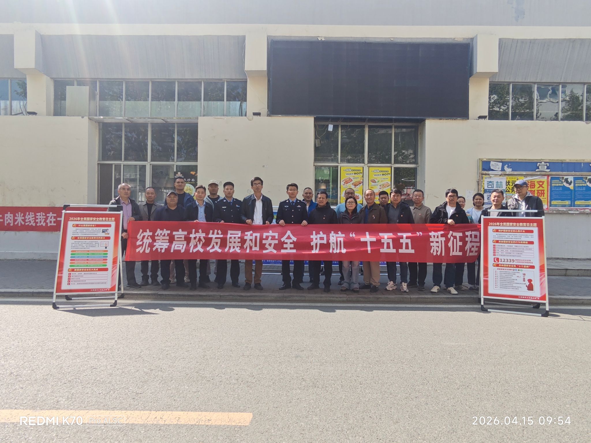 为迎接第十一个全民国家安全教育日,增强师生国家安全意识与防范风险能力,丰富校园安全文化,为“十五五”开局营造安全稳定的校园环境,4月15日上午,江苏海洋大学保卫处、郁洲派出所与电子工程学院在第一食堂北侧联合启动了“4·15”全民国家安全教育日系列宣传活动。学校保卫处、郁洲派出所及电子工程学院相关负责人出席活动。