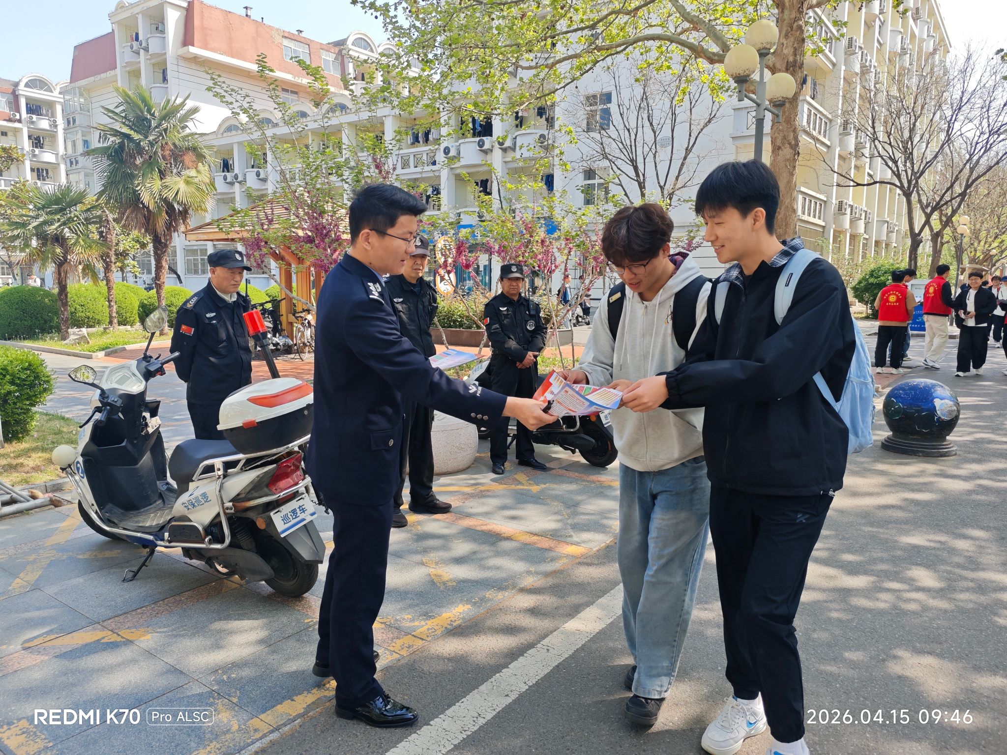 活动现场,校保卫处老师与郁洲派出所警官组织学生党员、入党积极分子志愿者,通过发放安全知识宣传彩页,开展“筑牢安全防线,建设平安校园”主题宣传。志愿者们深入学生中间进行“点对点”讲解,帮助大学生深刻认识金融电信诈骗的严重危害,提升防范意识。活动还鼓励同学们将所学反诈知识带回宿舍、带给亲友,共同构筑打击和防范电信网络诈骗的坚实防线。